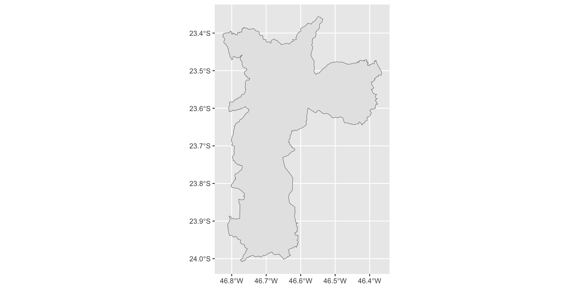 read_municipality(code_muni = 3550308): Delimitação de um município específico, usando o código do IBGE do município.