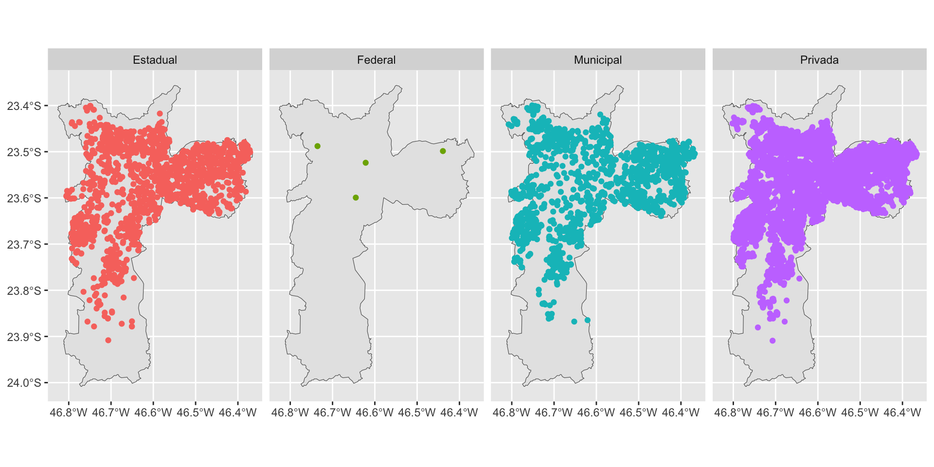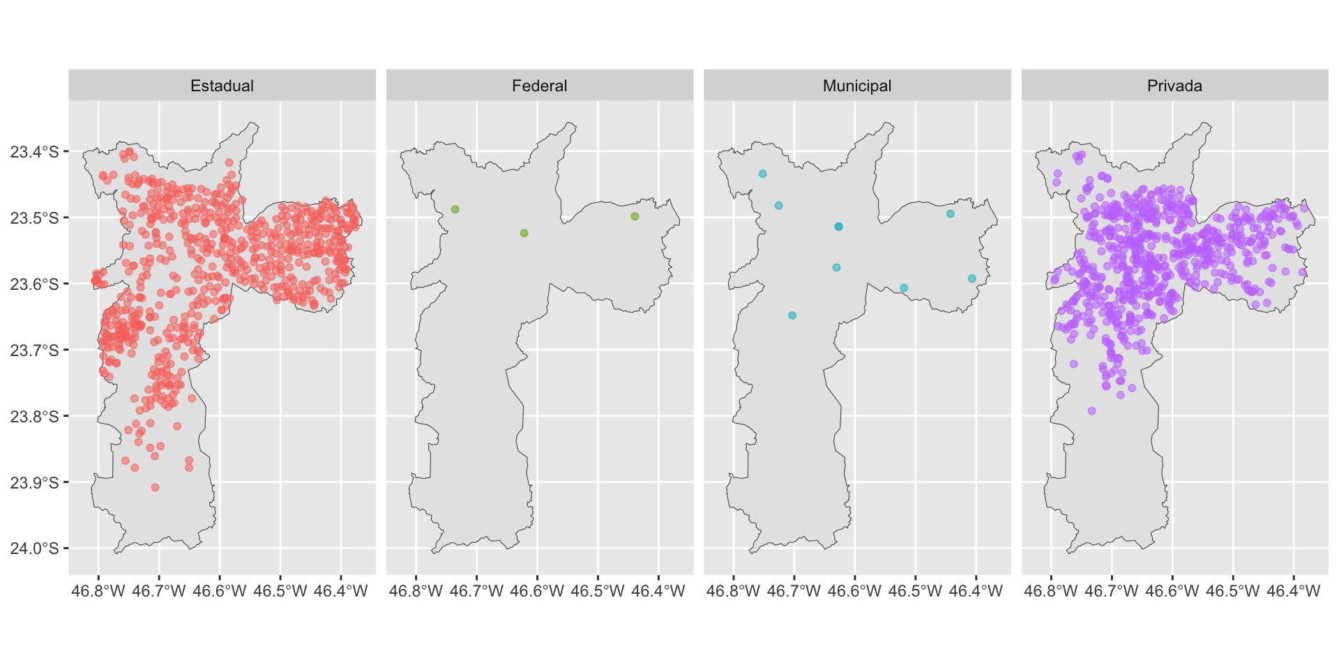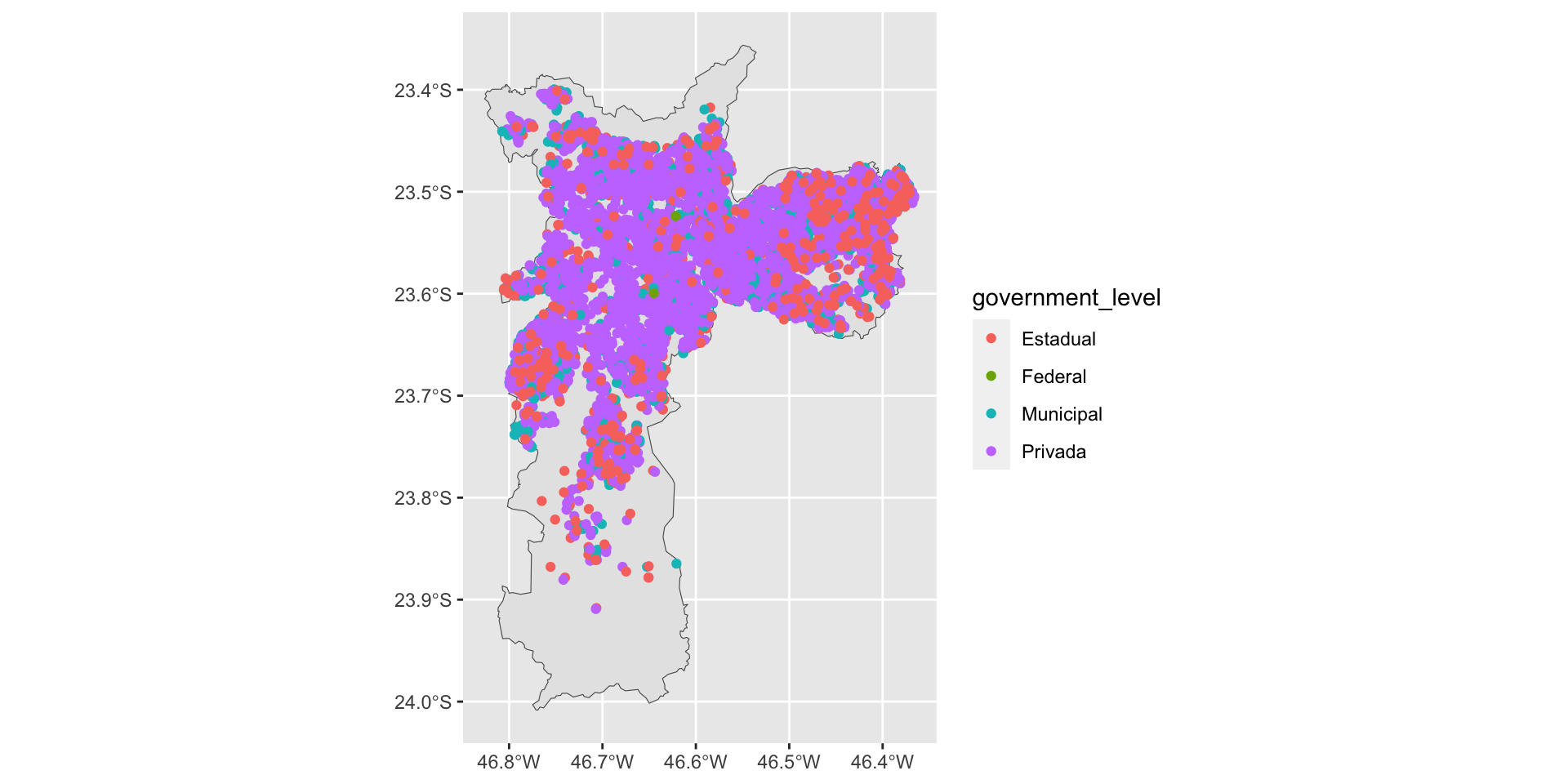 government_levelgovernment_levelLocalização das escolas estaduais e escolas privadas no município de São Paulo, que oferecem Ensino Médio