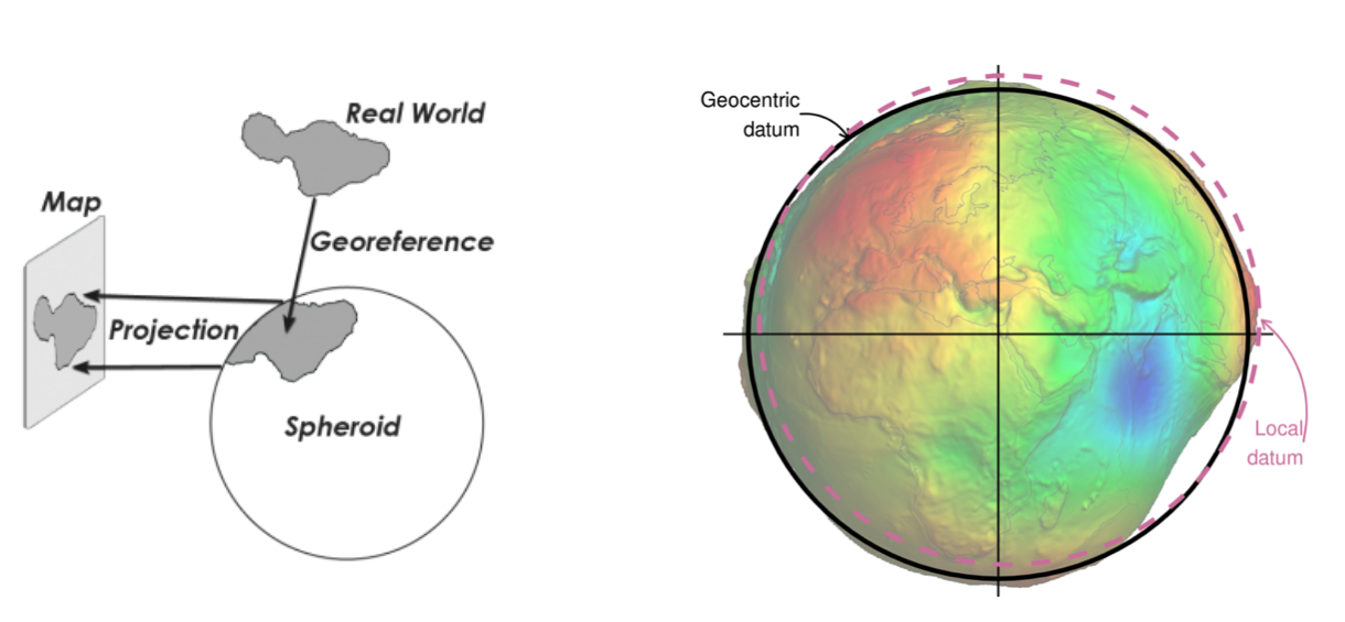 Mapas dependem de uma projeção que se refere a tradução da superfície tridimensional da terra em um plano cartesiano.