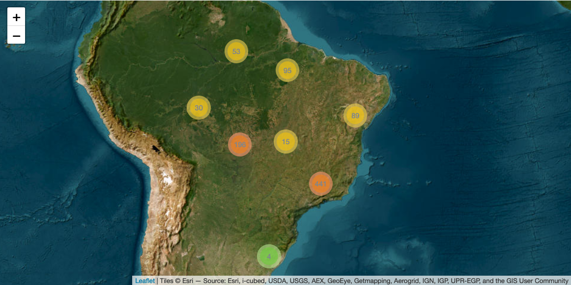 Informação agregada espacialmente em uma dada resolução (escalonável)